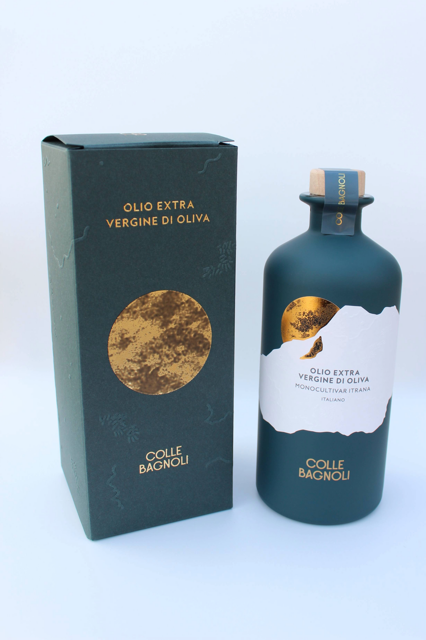 Il logo CB e il cerchio dorato centrale rendono la confezione riconoscibile, moderna e perfettamente in linea con l’immagine premium di Colle Bagnoli.